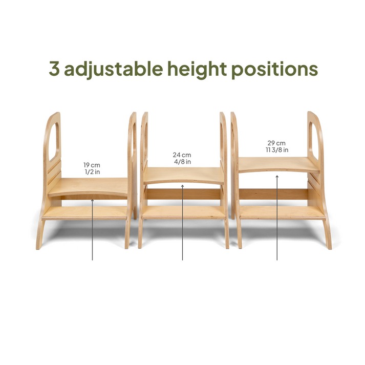 Geef je gezin een stapje extra met MIIMO®, het verstelbare opstapkrukje dat ontworpen is om met je kind mee te groeien en het dagelijks leven voor het hele gezin makkelijker te maken. Dit duurzame Ette Tete opstapkrukje helpt je kind om zelfstandig te worden, maar biedt ook praktische voordelen voor volwassenen. Het stevige ontwerp, gemaakt van duurzaam hout en afgewerkt met gifvrije verf op waterbasis, zorgt voor een veilige en milieuvriendelijke keuze die lang meegaat.