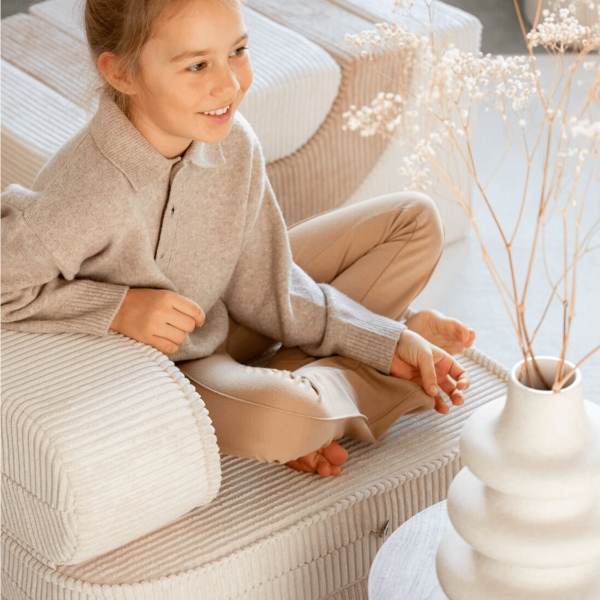 Of het nu gaat om het lezen van een spannend boek, gamen met vriendjes, of gewoon lekker chillen, deze Flip stoel past zich moeiteloos aan aan de wensen van jouw kleintje. De stevige constructie zorgt voor een stabiele zitpositie. En de zachte corduroy stof voelt vervolgens zo heerlijk aan dat ze er niet meer vanaf willen komen. Wie wil nou niet de heerlijke ribfluweel/corduroy stof om in te zitten en op te spelen?