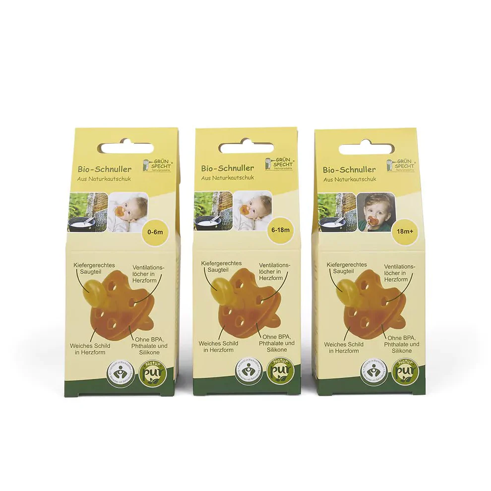 Dit Grünspecht speentje is gemaakt van 100% natuurrubber en bevatten geen kunst- of kleurstoffen. Ze zijn volledig veilig voor de gezondheid!