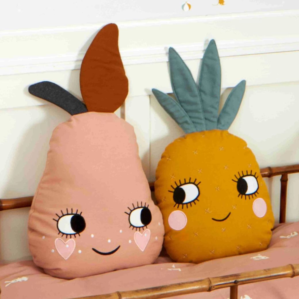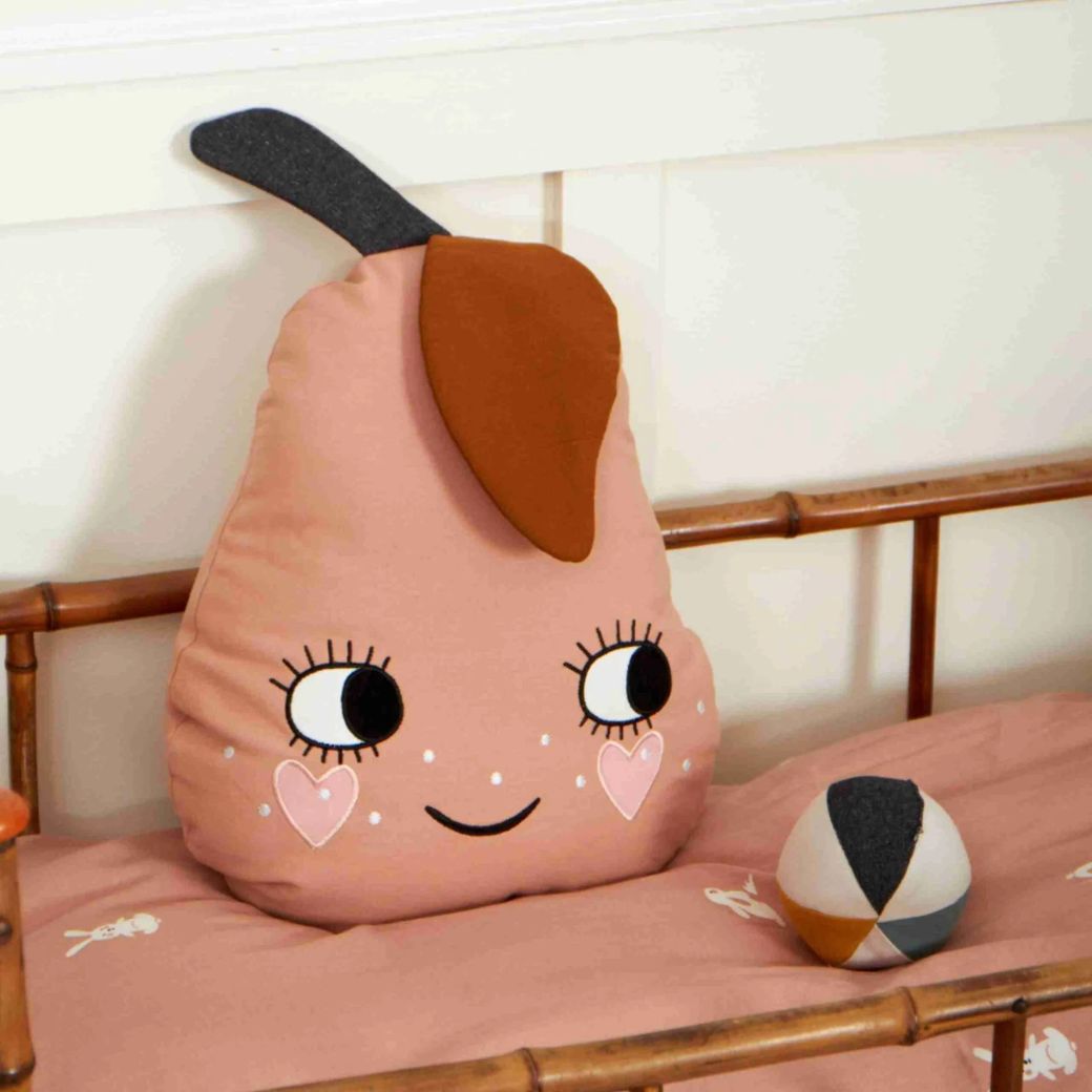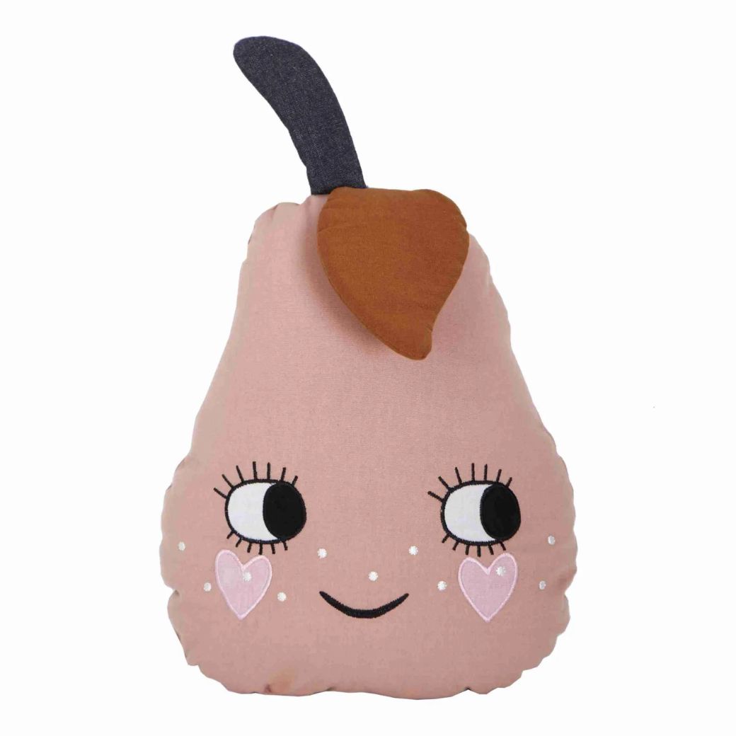 Dit toffe kussen in de vorm van een schattige roze peer is een leuke toevoeging aan een kinderkamer.
